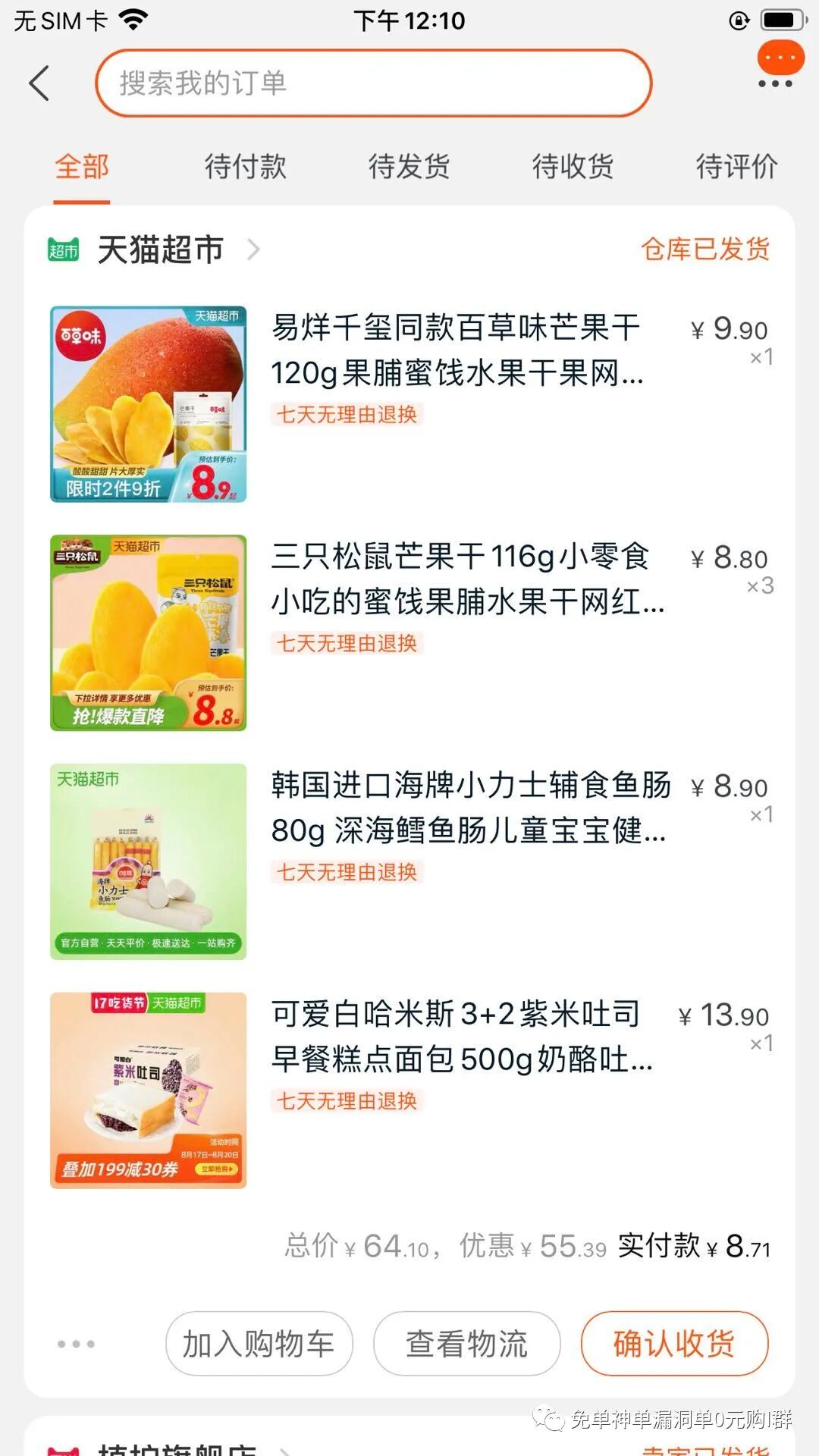 再来看看我拼喔和淘宝网的秒杀 ,还有几毛钱就可以买到各种商品,以及通过各种红包🧧实现的0撸,😄 每天我都蹲群买的太开心了 ,给你们看下我买了啥