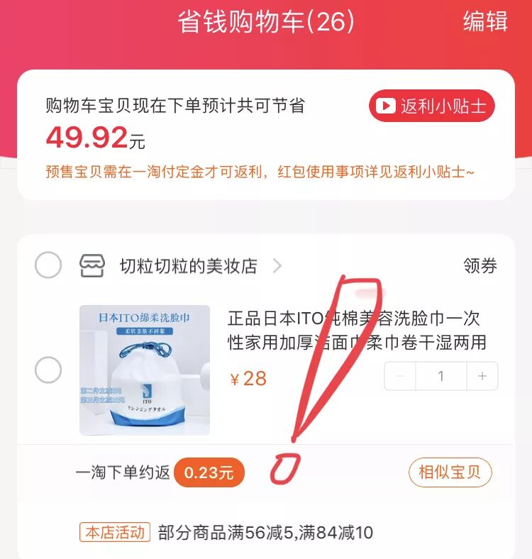这里有一个一淘下单约返**元,就是最后会给你的返利金额,也就是省的钱,不过最后会以集分宝的方式返还至你的淘宝网账户,到账后在进行下一次淘宝网商品付款的时候,会有集分宝的使用金额,可以直接抵消付款金额~