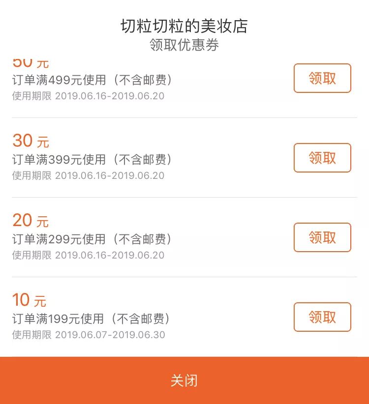 以切女士的店铺为例,最简单的操作就是在购物车店铺名的右边,点击领券弹出各种满减的优惠券,但是这种方式可能会有遗漏。例如这里最小的优惠券是满199-10元,如果买不到199,那就意味着没有优惠~